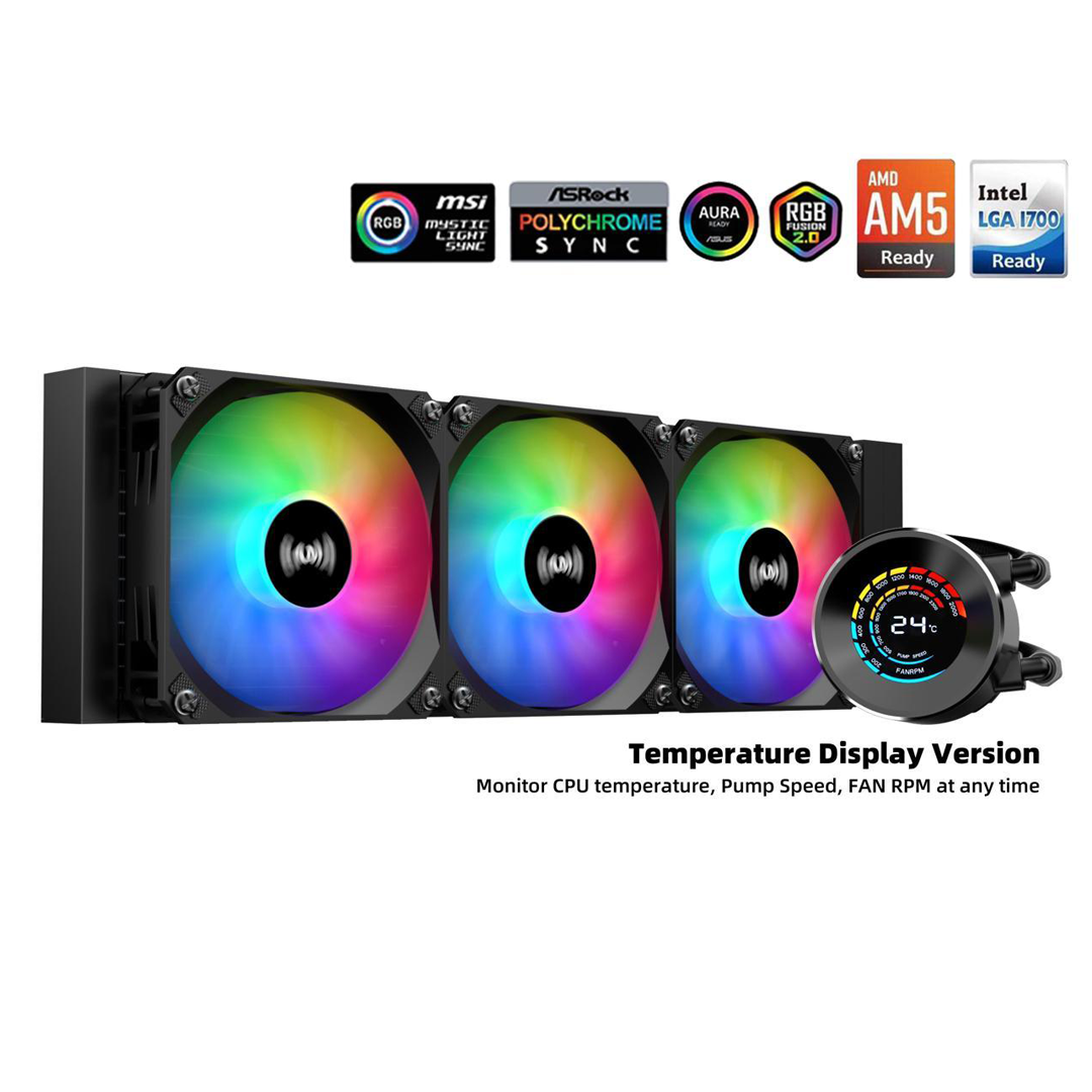 SAMA T360 Black liquid Cooler 360mm ARGB AIO Radiator LCD Temperature Display Screen CPU